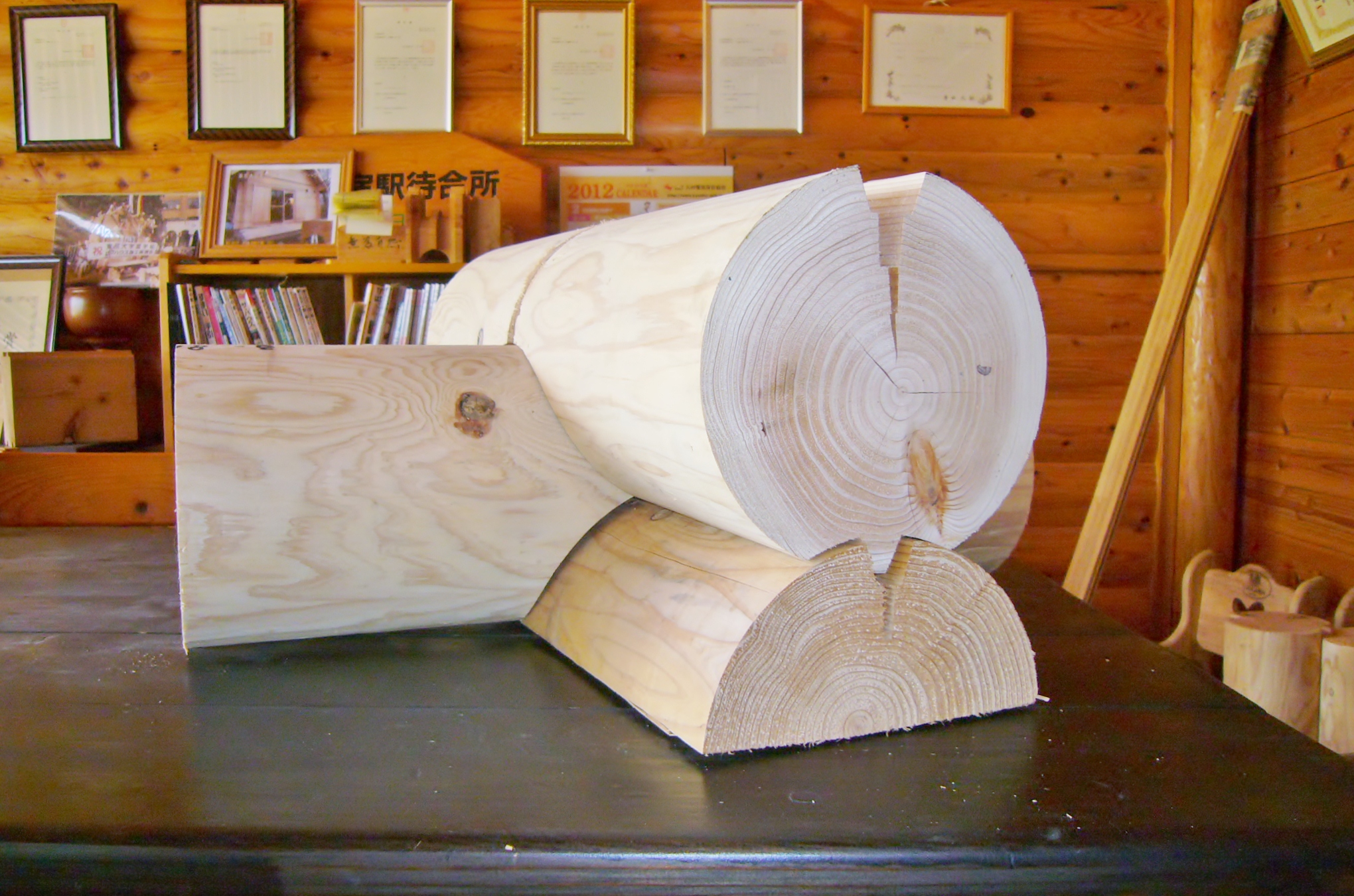 ログハウスの原木は大分県西部の日田市(旧日田郡)で伐採されたものを使用しています。