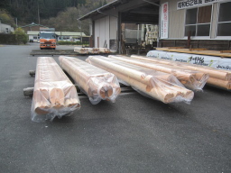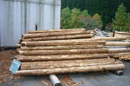 ログハウス用の材料は主に50〜60年生の杉の直材を使用します。